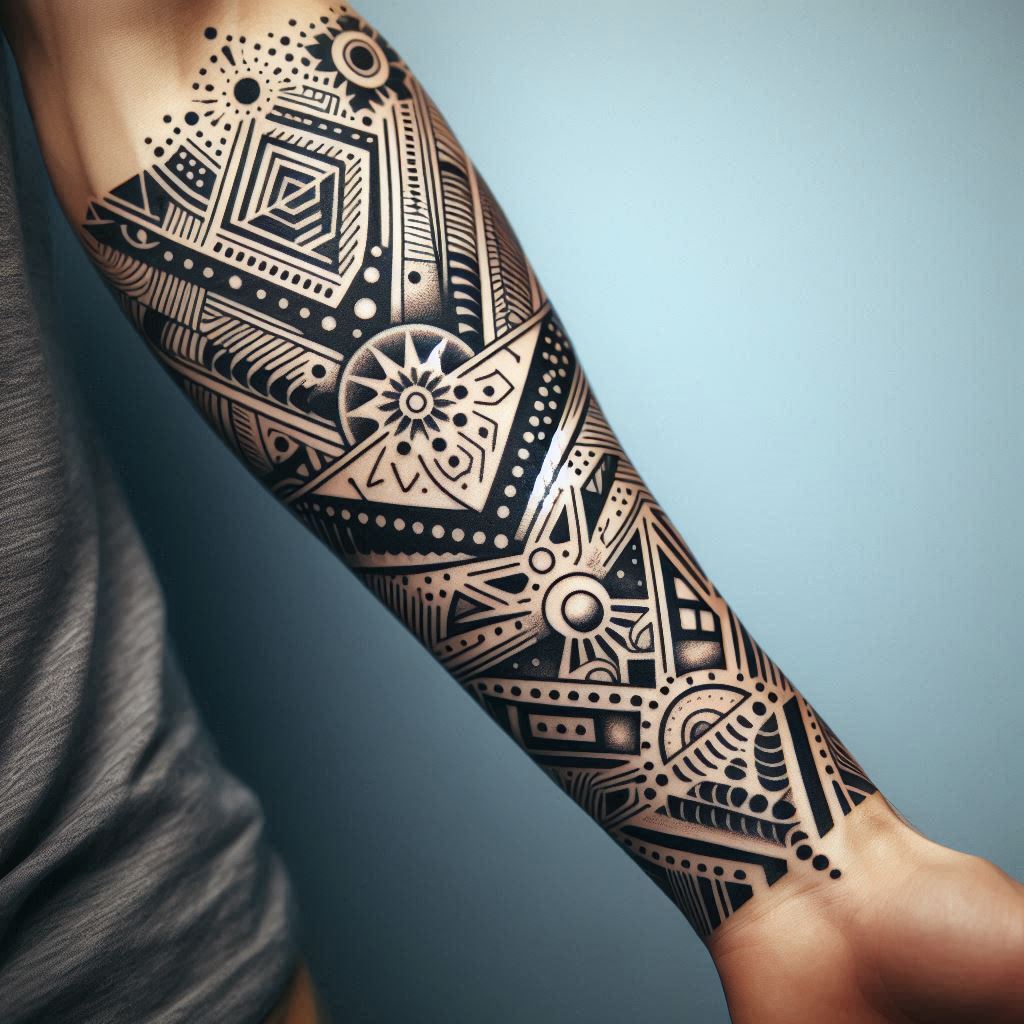 Сегодня существует еще одно направление абстрактного стиля тату. Оно берет начало из древних этнических орнаментов. Этим узорам придается магическое значение.