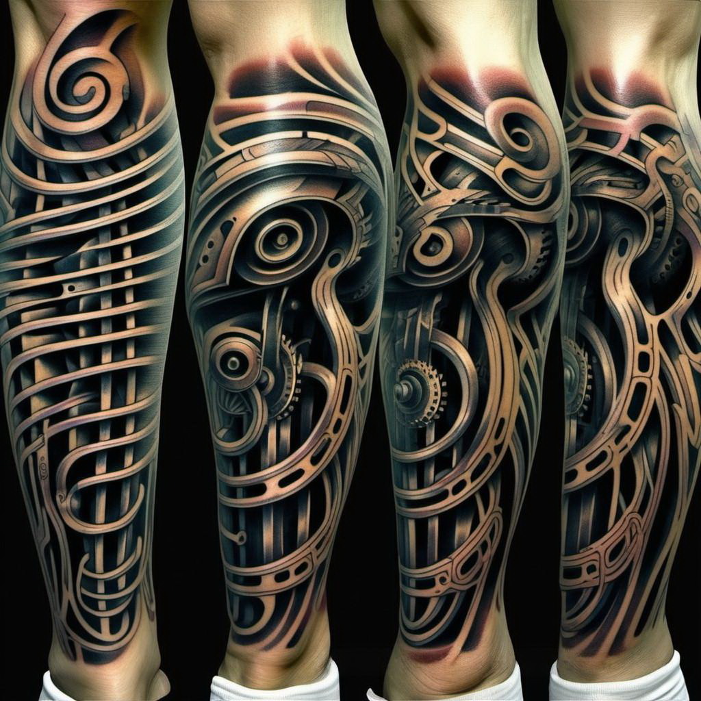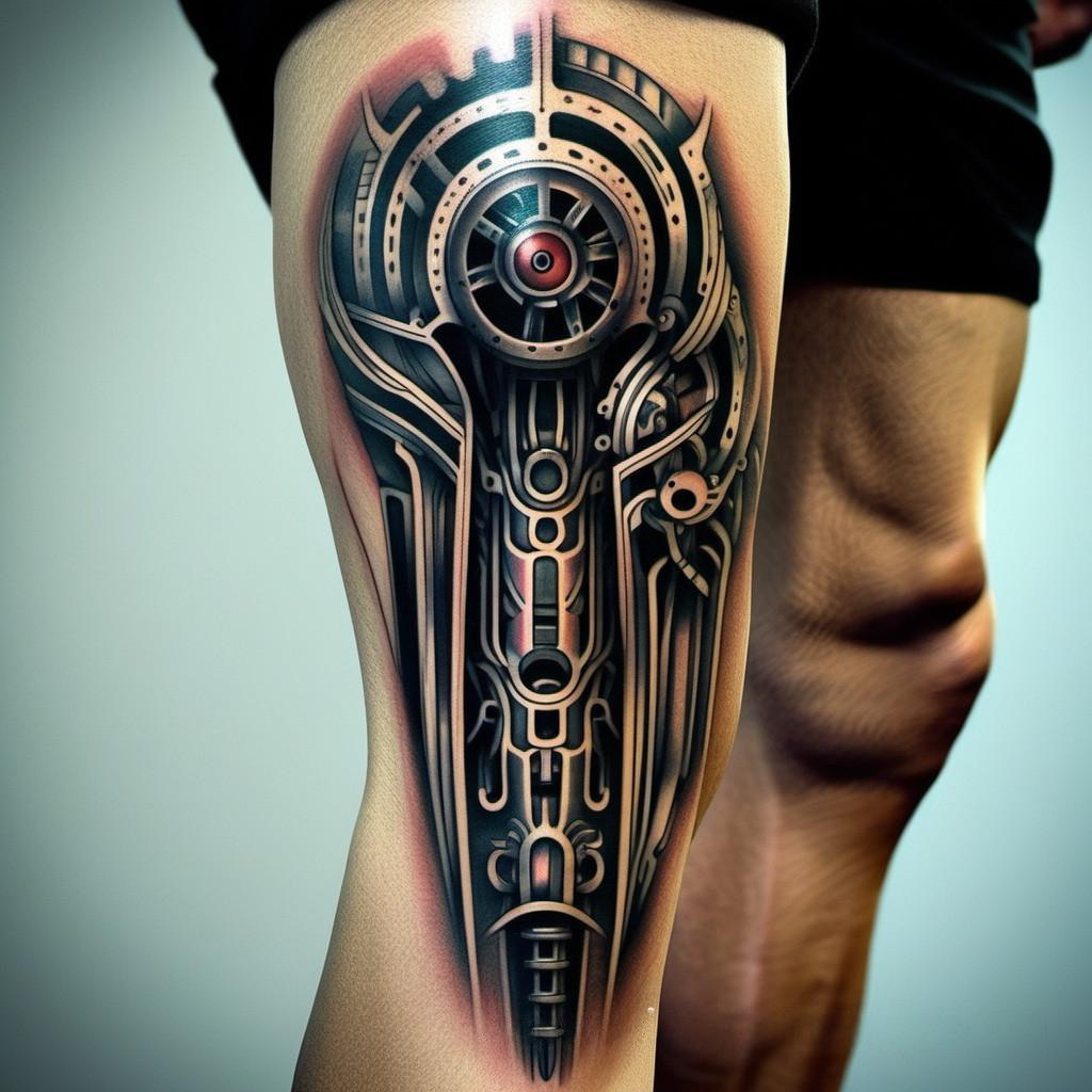 Тату биомеханика на ноге