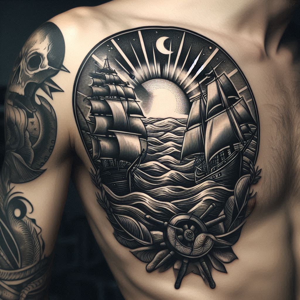 Одна из главных особенностей татуировок в стиле гравюра – это использование черно-белой цветовой гаммы. Краски для этих татуировок, как правило, черные с возможными белыми акцентами для создания контрастных теней. Также важно отметить применение различных техник линии и штриховки для достижения максимальной детализации изображений.
