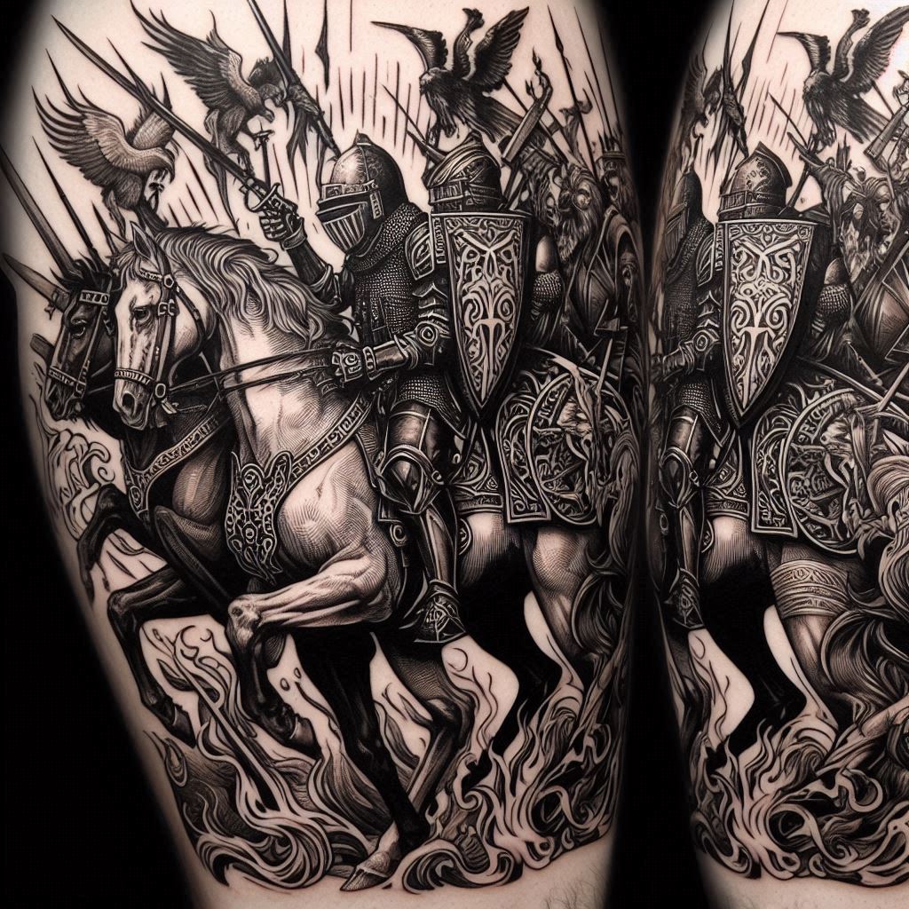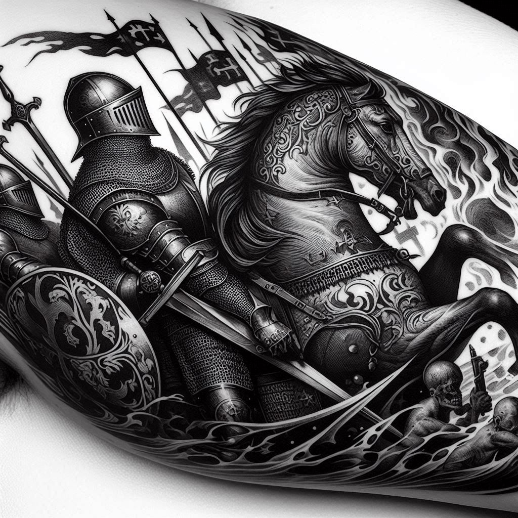 Татуировки в стиле гравюра часто включают в себя сюжеты и различные персонажи, которые напоминают средневековые манускрипты и иллюстрации. Вот некоторые популярные тематики: