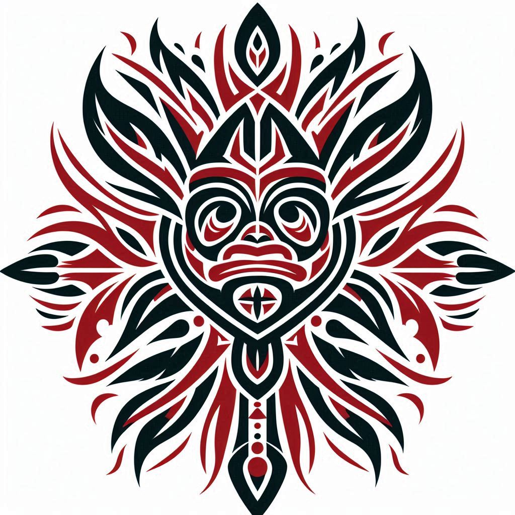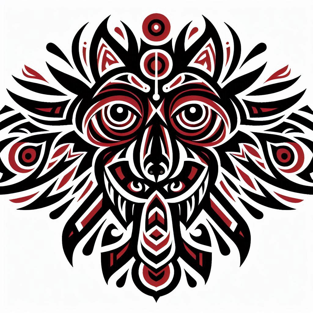 Стиль основан на искусстве племенной татуировки, распространенной на островах и по побережью Канады, Аляски. В те времена изображения демонстрировали социальный статус, подвиги человека. Рисунки на теле считались привилегией знати. Наносили татуировки по большим праздникам, это был публичный обряд, который проводил вождь.