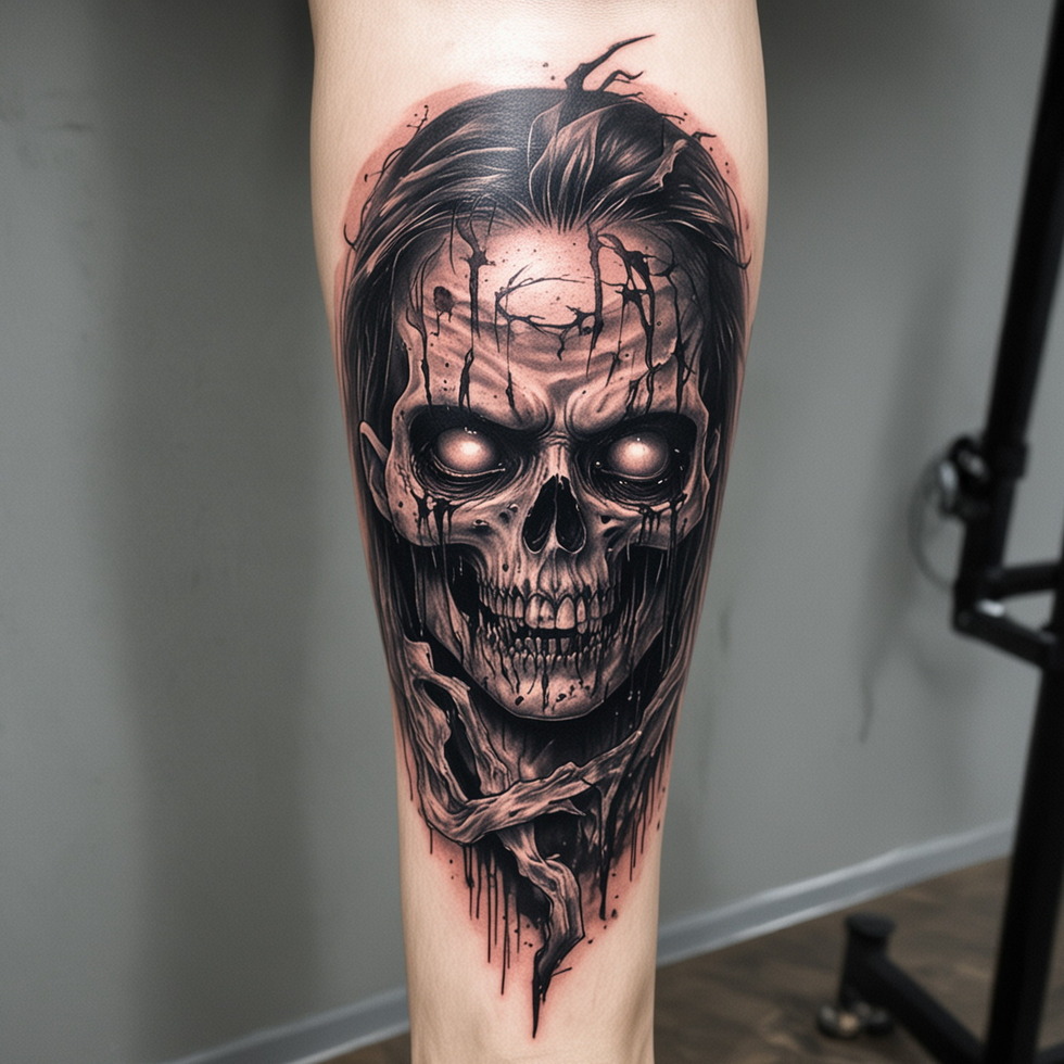 Стиль хоррор (horror tattoo) – это нанесение на кожу изображений героев и сцен из фильмов ужасов, а также других «жутких» картин.