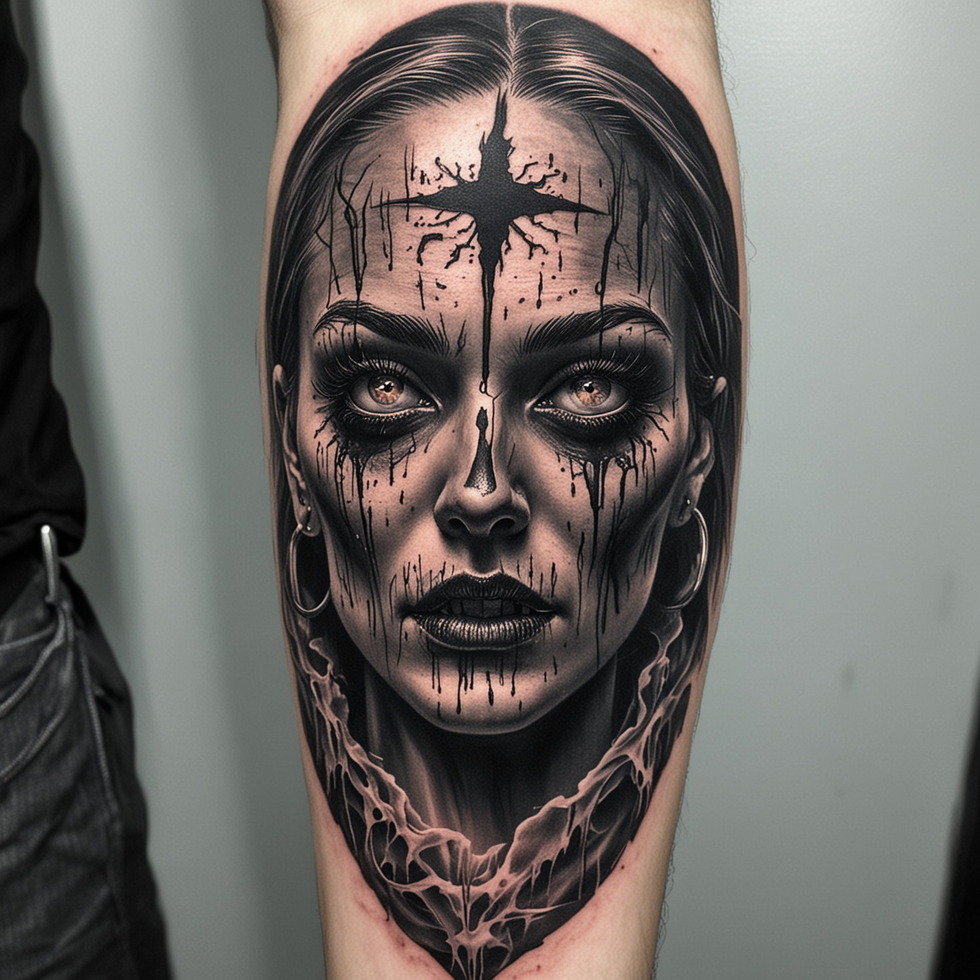 Не менее важно и исполнение хоррор татуировок – чем более детализированный и реалистичный ужас, тем сильнее впечатление. Также популярны стилизованные надписи, которые могут с выразительностью передавать всё тот же элемент страха, как будто слова оживают и рассказывают свою ужасающую историю.