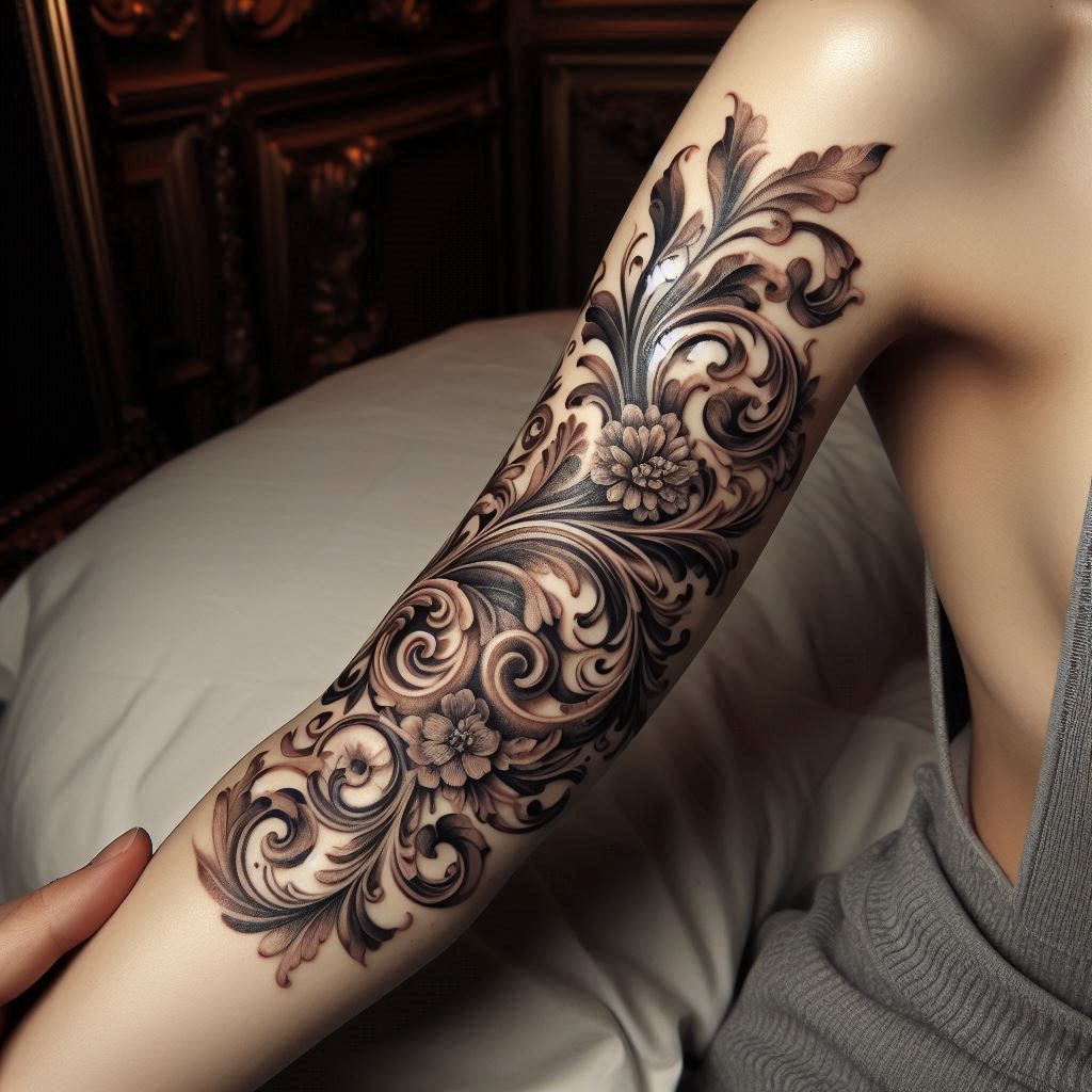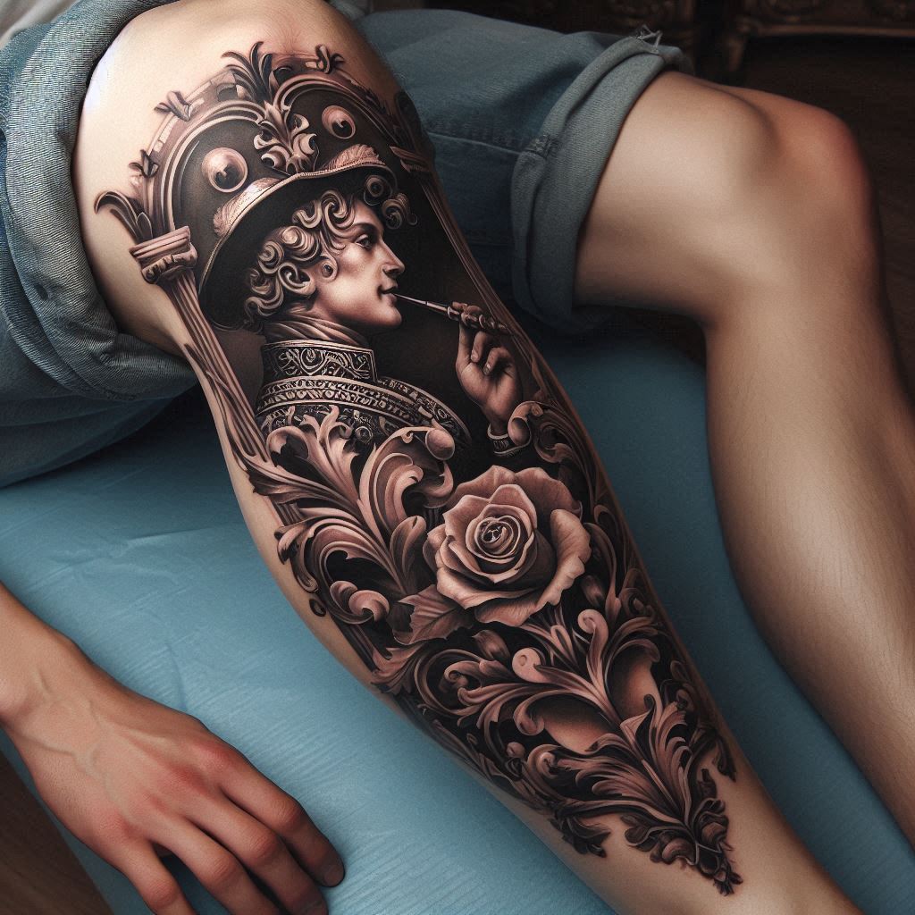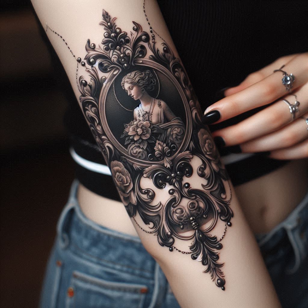 Тату в стиле барокко могут быть любыми, для мужчин и женщин они практически ничем не различаются. Конкретный эскиз – дело индивидуального вкуса.