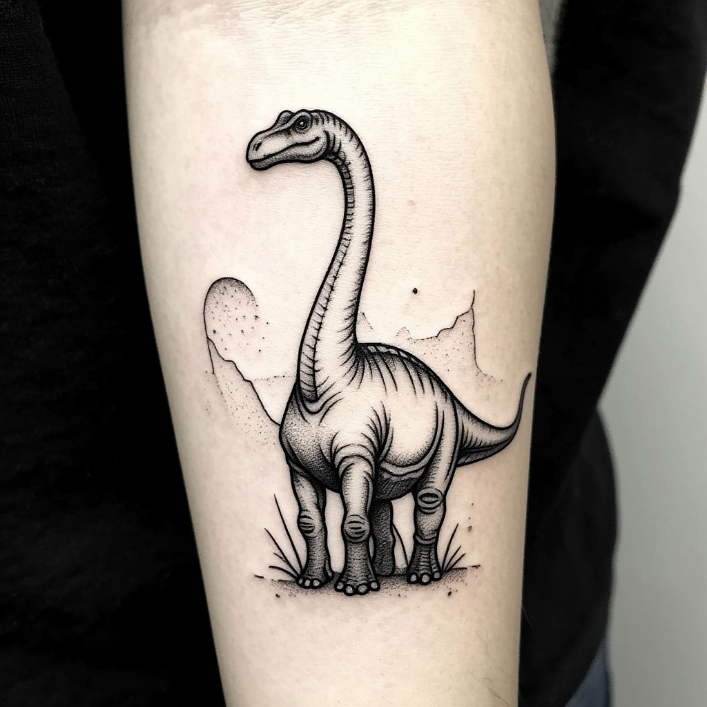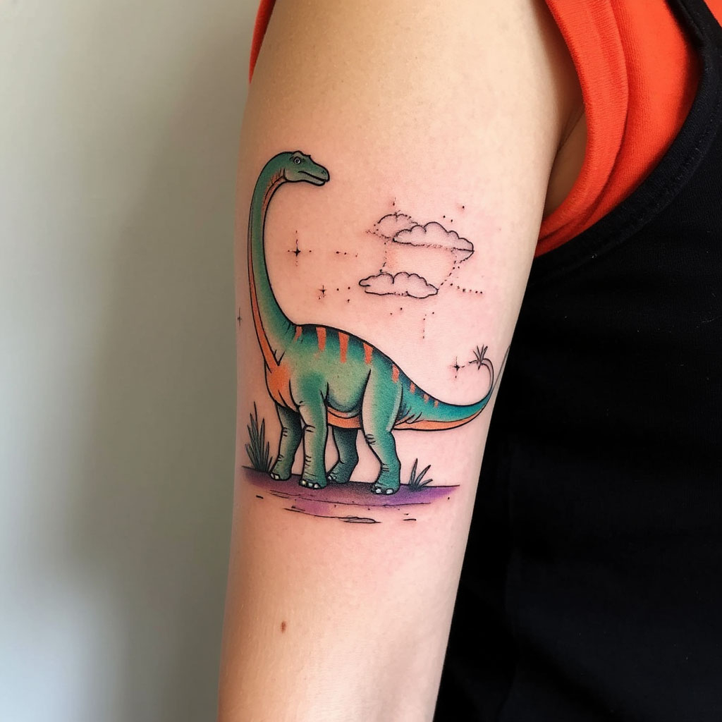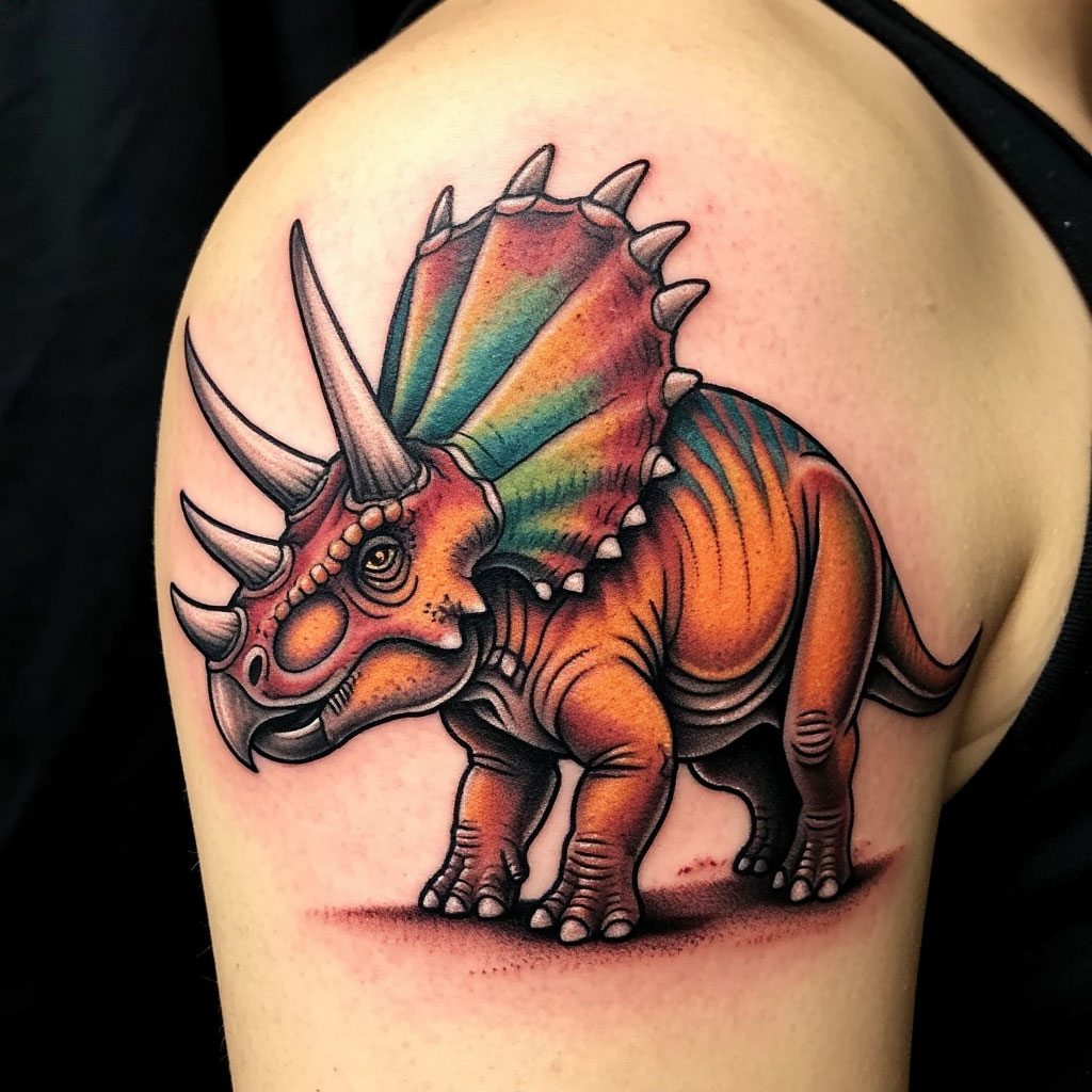 Тату динозавр выполняется в различных стилях и цветовых решениях, может быть дополнено элементами с символическим значением.