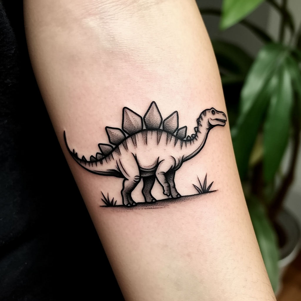 Древних ящеров наносят на плечи, предплечья, запястья, спину. Занимая большую площадь, рисунок раскрывается, выглядит эффектно. Тату небольшого размера наносят на грудь и шею. Например, вылезающий из яйца динозавр под ключицей.