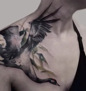 Особое значение имеет татуировка в виде журавля-оригами. Журавль означает помощь, поддержку, доброту. По древним японским поверьям, если сложить тысячу бумажных журавликов и загадать желание, оно непременно сбудется. В массовой культуре эта легенда известна благодаря истории Сасаки Садако, пострадавшей от бомбардировки ее родной Хиросимы в 1945 году.