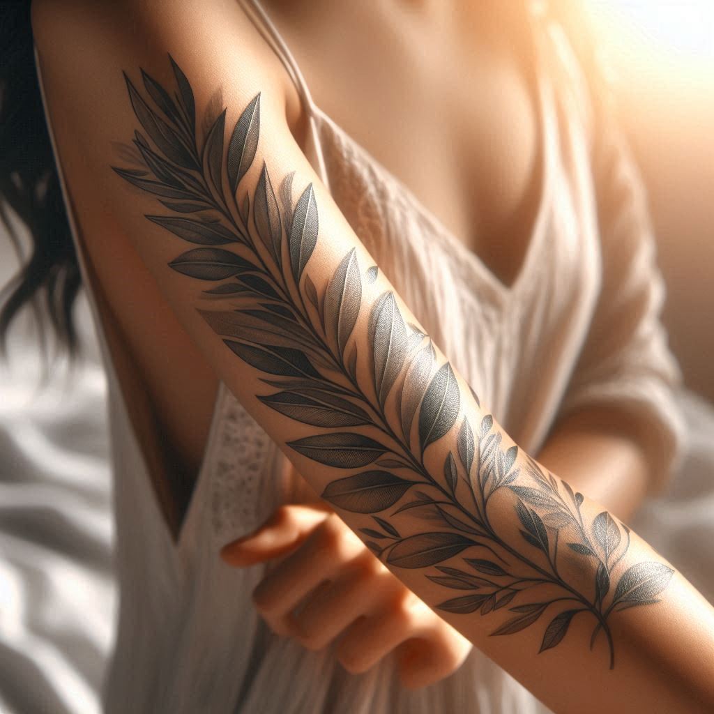 Эскизы тату в виде ветви оливы наиболее популярны у девушек, так как это дерево является символом плодородия и изобилия. В древние времена масличными веточками украшали головы жениха и невесты, желая им мира, любви, рождения здоровых детей. Небольшие рисунки изящно выглядят на девичьих запястьях. Красиво смотрятся как цветные, так и монохромные варианты.