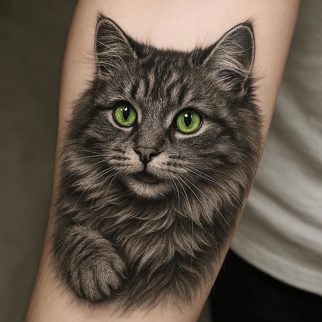 - Кот – символ уюта, домашнего тепла, нежности и ласки. В татуировках находят свое отражение не только очаровательные домашние коты, но и пушистые герои популярных произведений: Чеширский кот Кэрролла, булгаковский Бегемот, Хэлло Китти, Гарфилд и даже кот Джонс из саги «Чужой».